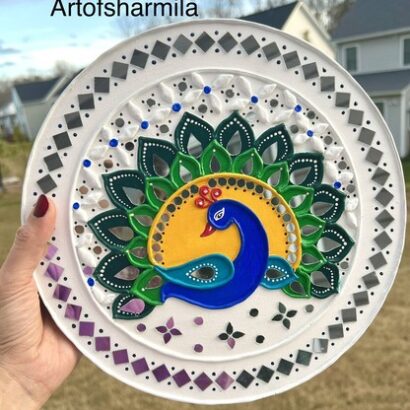 - Perfect for living rooms, entrances, or special décor spaces, this Peacock Lippan art is not just decoration — it represents culture, beauty, and timeless elegance in a simple yet classy way.This Peacock Lippan art is inspired by the majestic look of the peacock, a symbol of beauty and pride. The handcrafted clay patterns create depth and fine detail, while the mirror work adds brightness and life to the design.When light falls on it, the mirrors shine gently, making the artwork stand out even more.
